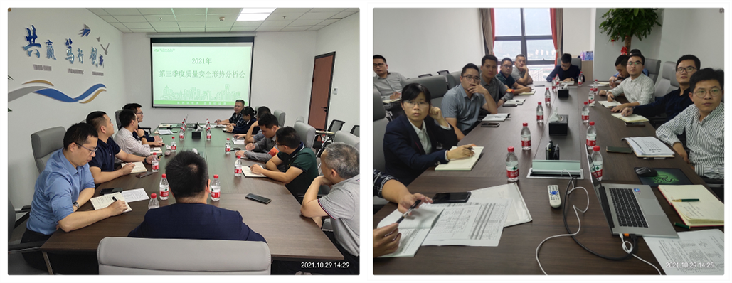 2021年10月29日,集团 “2021年第三季度质量安全形势分析会”在福州总部召开!集团总经理黄茂文先生、常务副总经理潘德诚先生及集团副总经理王永远先生携集团各部门负责人和项目经理参会。会议聚焦2021年第三季度的项目管理工作,针对项目管控中存在的问题进行了总结分析,对完善项目部与公司各部门协同工作机制进行了充分的探讨,并对下一季度工作重点进行了部署。